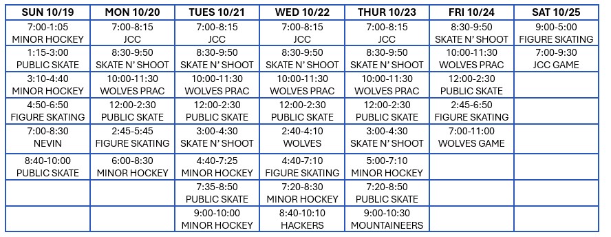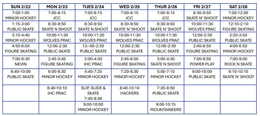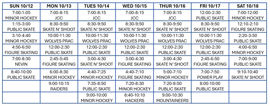 Public skating is available daily with skate rentals for toddlers to adult. Skate sharpening is also available. Skate & Shoot hours are set aside for those that play hockey. Rock n' Skate is for teens and Family Skate is available on select Friday and Saturday evenings in the winter and offers DJ music with flashy colored lights. A Slip, Slide & Skate program is available for those who want to learn to skate. Birthday Party Rooms are also available. Watertown Minor Hockey and the Figure Skating Club also offer skating programs. The local Catholic High School, Adult Hockey Groups, and private groups also skate at the arena.