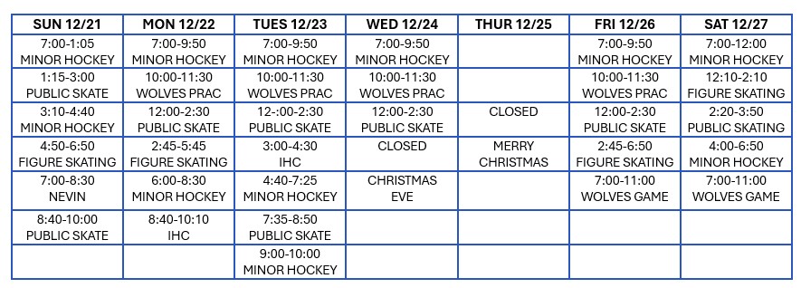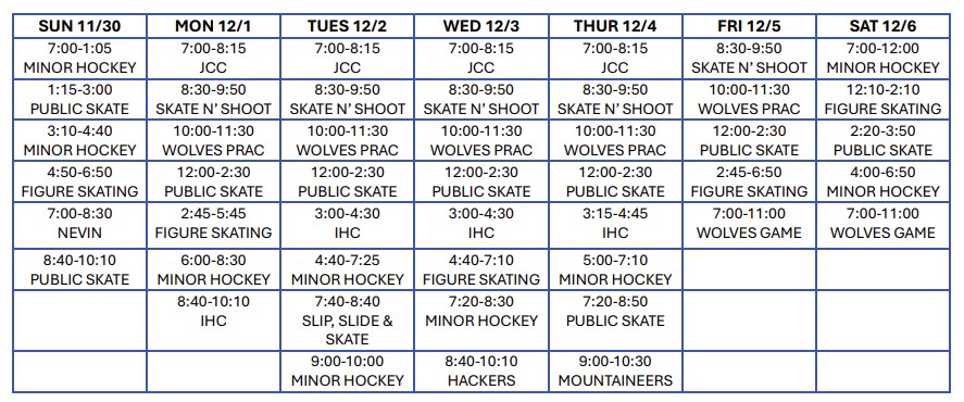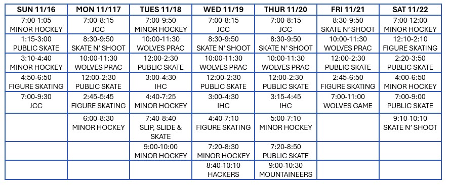 Public skating is available daily with skate rentals for toddlers to adult. Skate sharpening is also available. Skate & Shoot hours are set aside for those that play hockey. Rock n' Skate is for teens and Family Skate is available on select Friday and Saturday evenings in the winter and offers DJ music with flashy colored lights. A Slip, Slide & Skate program is available for those who want to learn to skate. Birthday Party Rooms are also available. Watertown Minor Hockey and the Figure Skating Club also offer skating programs. The local Catholic High School, Adult Hockey Groups, and private groups also skate at the arena.